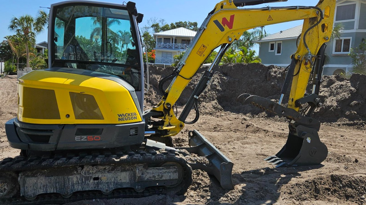 Introducing the 2023 Wacker Neuson EZ50 Mini Excavator — a compact powerhouse perfect for demanding job sites in Sarasota and beyond. This 13,000 lb excavator delivers the performance of a larger machine while offering the maneuverability of a zero-tail swing design, allowing you to work in tighter spaces without sacrificing digging power or safety. Equipped with a 20-inch bucket and a hydraulic thumb, it’s ideal for precise trenching, grading, lifting, and demolition work. The enclosed A/C cab ensures operator comfort throughout long workdays in Florida’s heat, while intuitive controls and smooth hydraulics enhance productivity and efficiency on every job.
